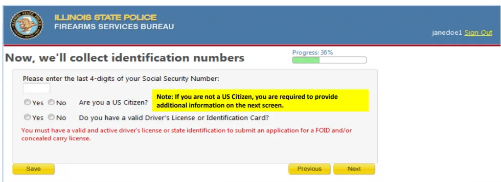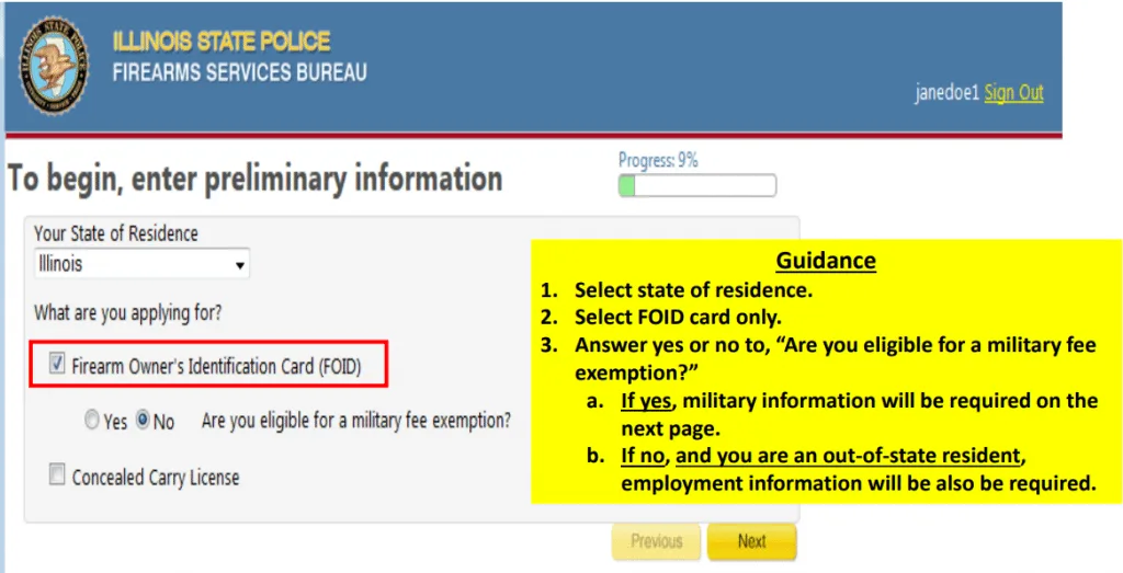 Applicants must be 21 years of age or have a parent or legal guardian sponsor that is eligible for a FOID card. FOID applicants must not be prohibited from possessing firearms in accordance with state or federal law. This requires the applicant is/has: