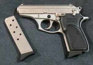 The Bersa Thunder 380 is essentially a clone of the popular Walther PPK, not only in terms of its look but also in terms of its design. Like the PPK, the Thunder 380 utilizes a blowback action and a slide mounted safety and decocking lever. The gun ships with 7 round magazines, but 8 round magazines from both Bersa and Mec-Gar are also available.